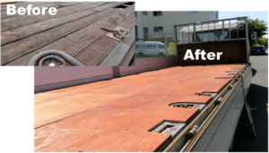 トラック荷台の修理:老朽化した荷台を根太から補修し自力で修理した。